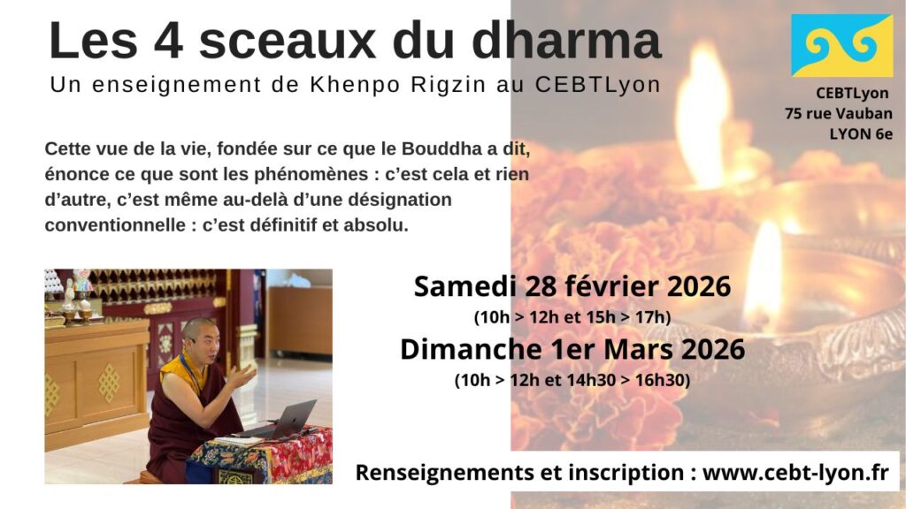 – 21 et 22 mars 2026 : « l’appel au lama de loin » : mieux comprendre ce texte pour se placer dans la bonne intention lors de sa récitation, par lama Jean-Marc Falcombello, lama référent du CEBT de Genève.