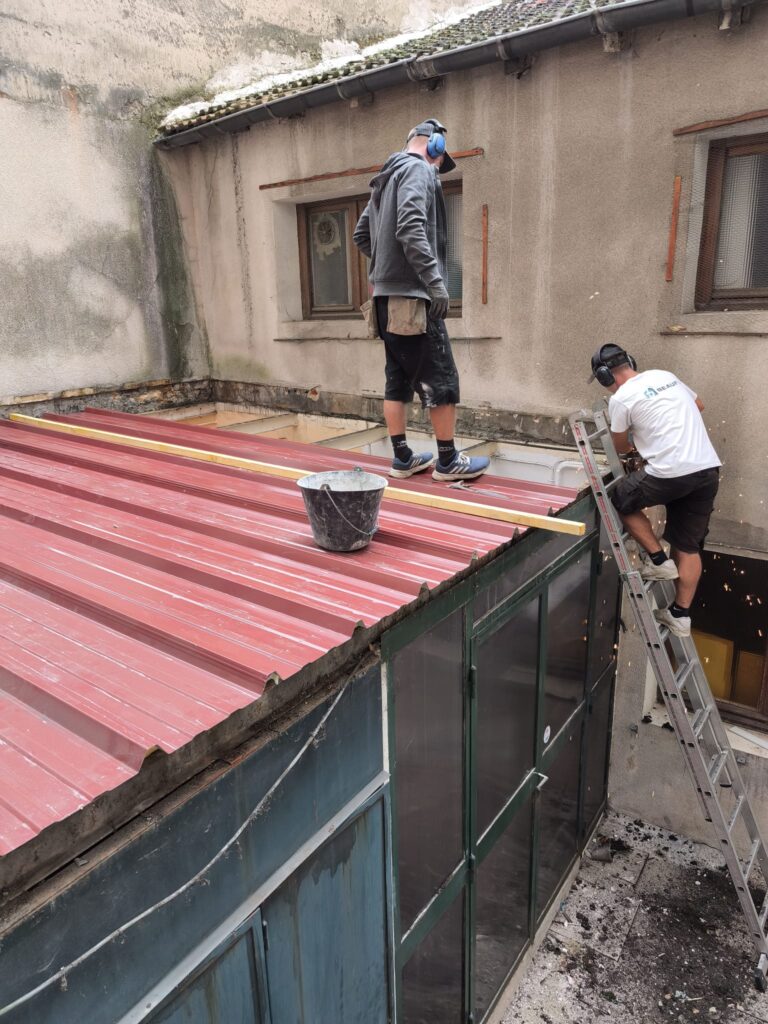 Grâce à votre générosité, la première tranche des travaux de réfection et d’étanchéité des toits a démarré en Septembre 2025 par le remplacement complet du toit qui recouvre le couloir allant de l’immeuble principal (l’entrée du local) à la « dépendance » (le Temple).